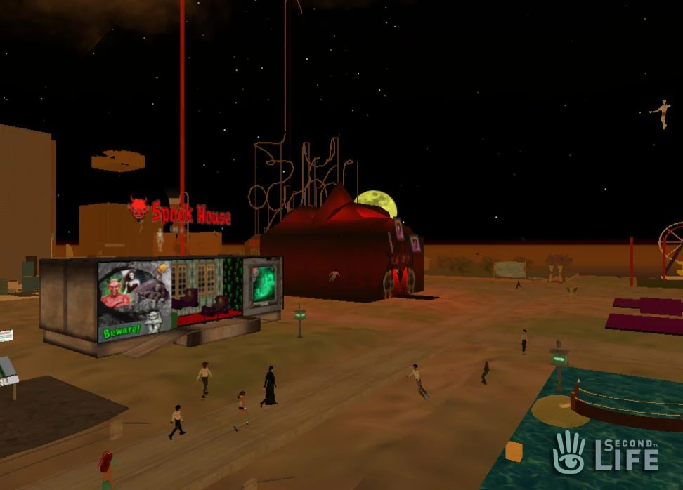 LindenWorld (1.0) had its grand opening on Monday, October 13th (5 PM PST), 2003, and a large party celebrating the event with Philip Linden as a special guest! The park spanned two sims (Coney and Luna) and featured many different types of rides, rollercoasters, fun/spook houses, carnival like games and more. LindenWorld opened to much fanfare and many visitors flocking to the amusement park.
