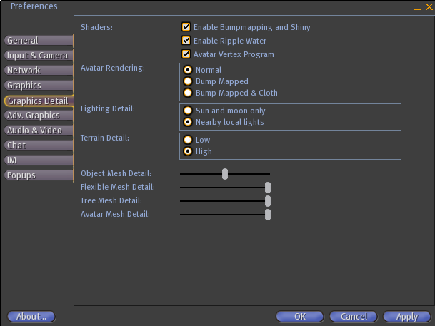 SL 1.10 preferences window - graphics detail tab