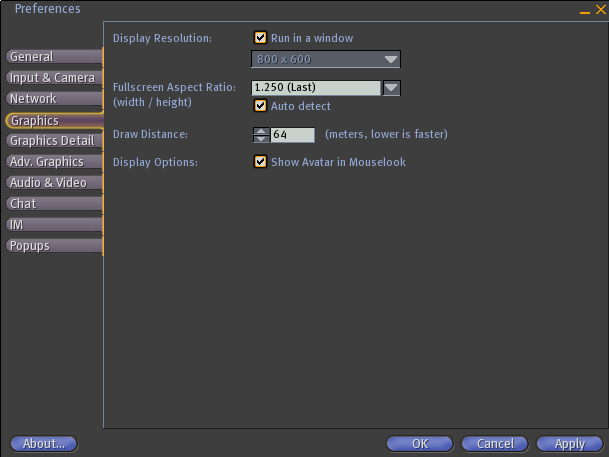 SL 1.10 preferences window - graphics tab