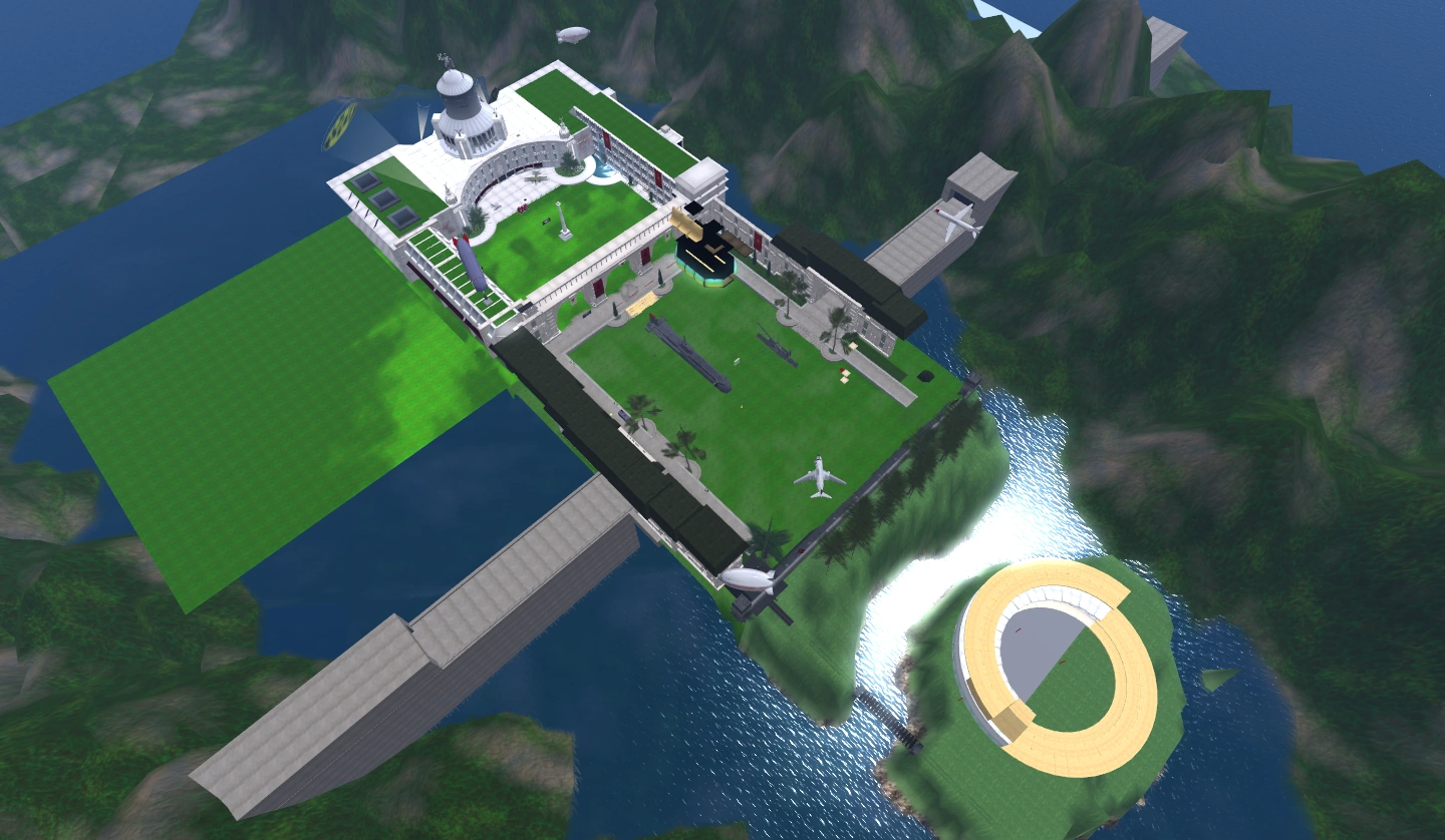 The Virtual Worlds class quickly outgrew the free 1 acre parcel, and in February of 2007 a full sim was purchased through Linden's educational discount program.